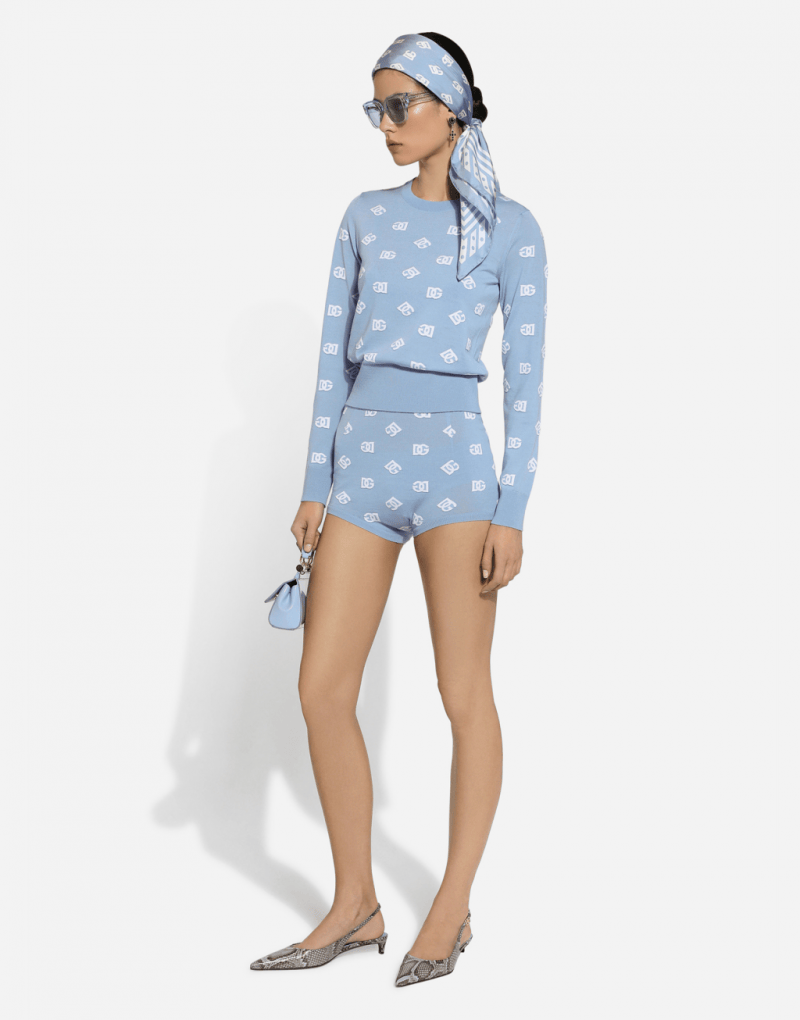 另一款值得关心的单品是DG徽标提花实丝取羊毛针织衫,它展现了杜嘉班纳正在针织设想上的立异。该款针织衫来自2024/25秋冬DNA系列,采用了全新的雷切尔织机工艺,巧妙地将实丝取羊毛相连系,带来了奇特的触感和舒服度。D&G以糖纸蓝色做为底色,配上奶白色的DG徽标提花,呈现出一种清爽而现代的视觉结果。18针的精美针织工艺使得Dolce Gabbana这款针织衫不只正在外不雅上具有条理感,还正在质感上令人冷艳。杜嘉班纳通过这款针织衫再次证了然其正在高端针织面料使用上的立异力,打制了一款既典范又前卫的时髦单品。